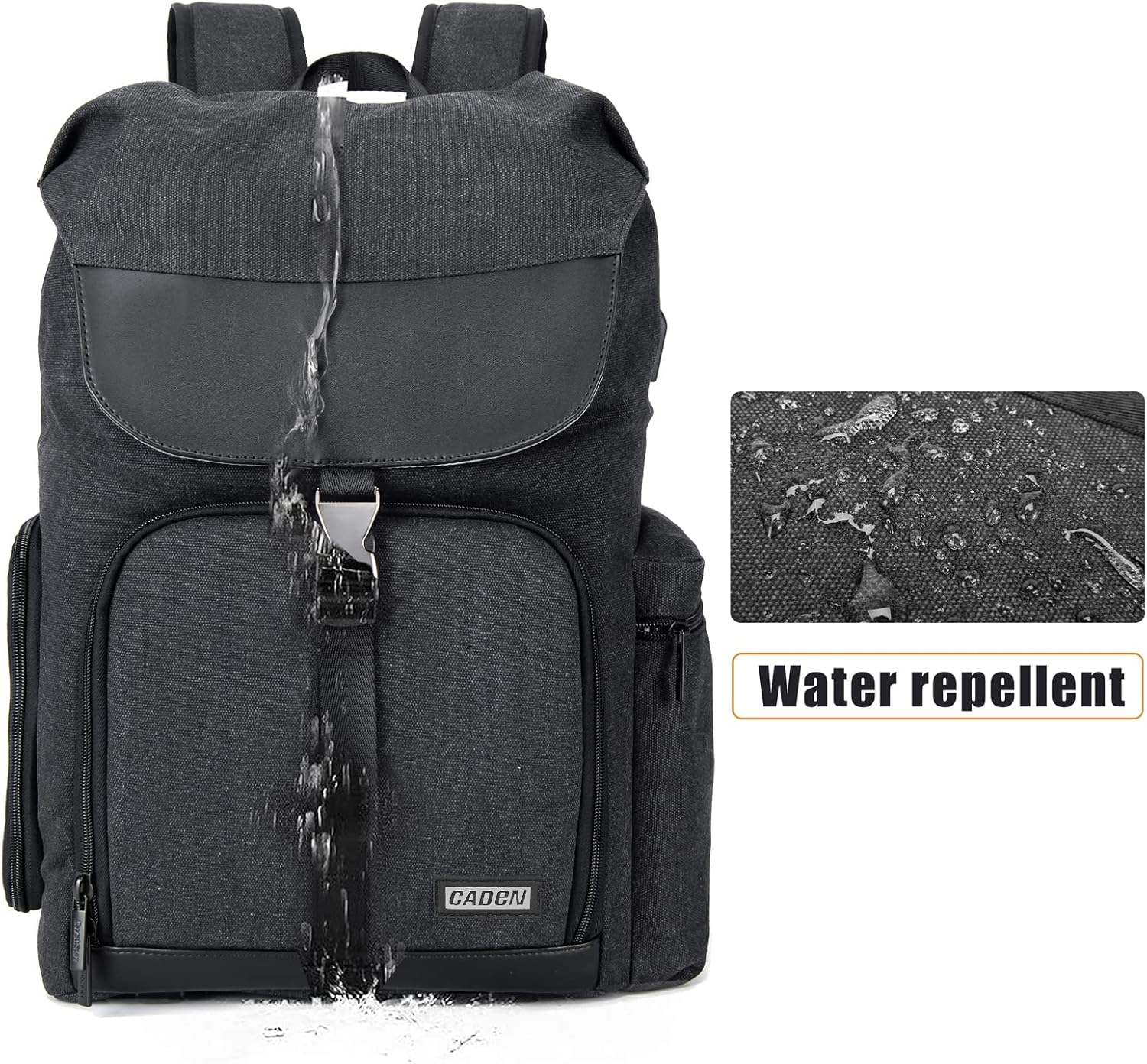 CADeN Camera Backpack Canvas Camera Bag for DSLR/SLR Mirrorless Camera with 15.6 inches Laptop Compartment, Camera Case Compatible for Sony Canon Nikon Cameras and Lens Tripod Waterproof Black