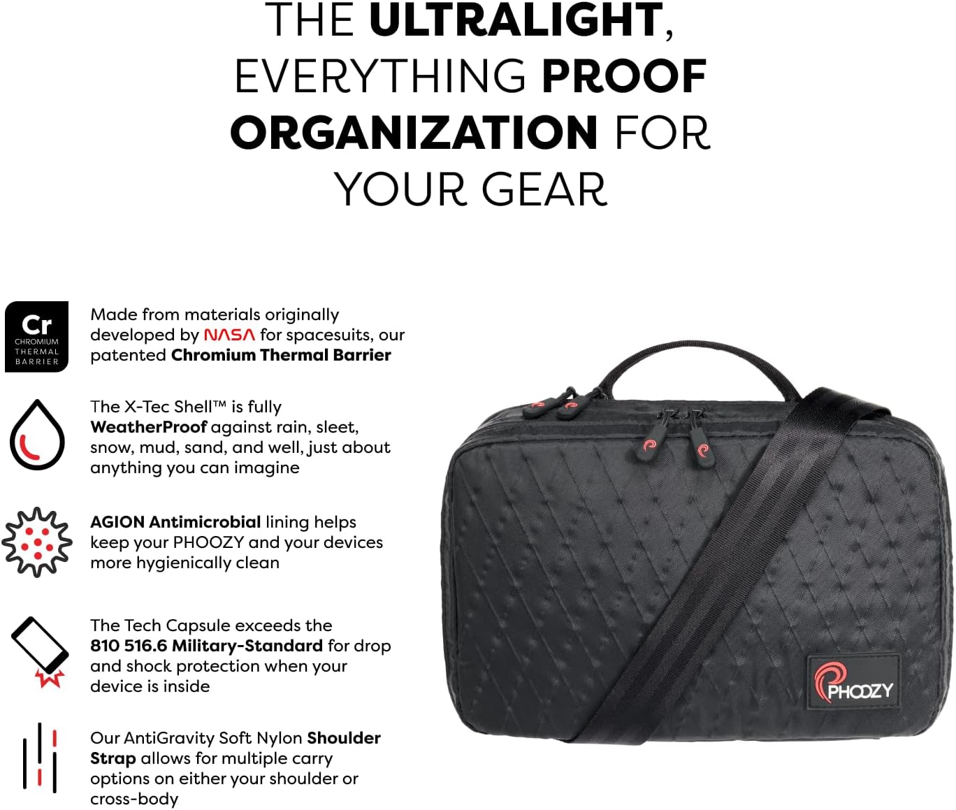 - CARRY STRAP INCLUDED: Allows you to use the Tech Capsule as a cross-body sling, fanny pack, over shoulder carry, or remove the strap and use the integrated attachment system to connect it to your PHOOZY Tablet or Laptop Capsule, your gear, or just about anything. Ultra versatile making the Tech Capsule the must-have accessory for travel.