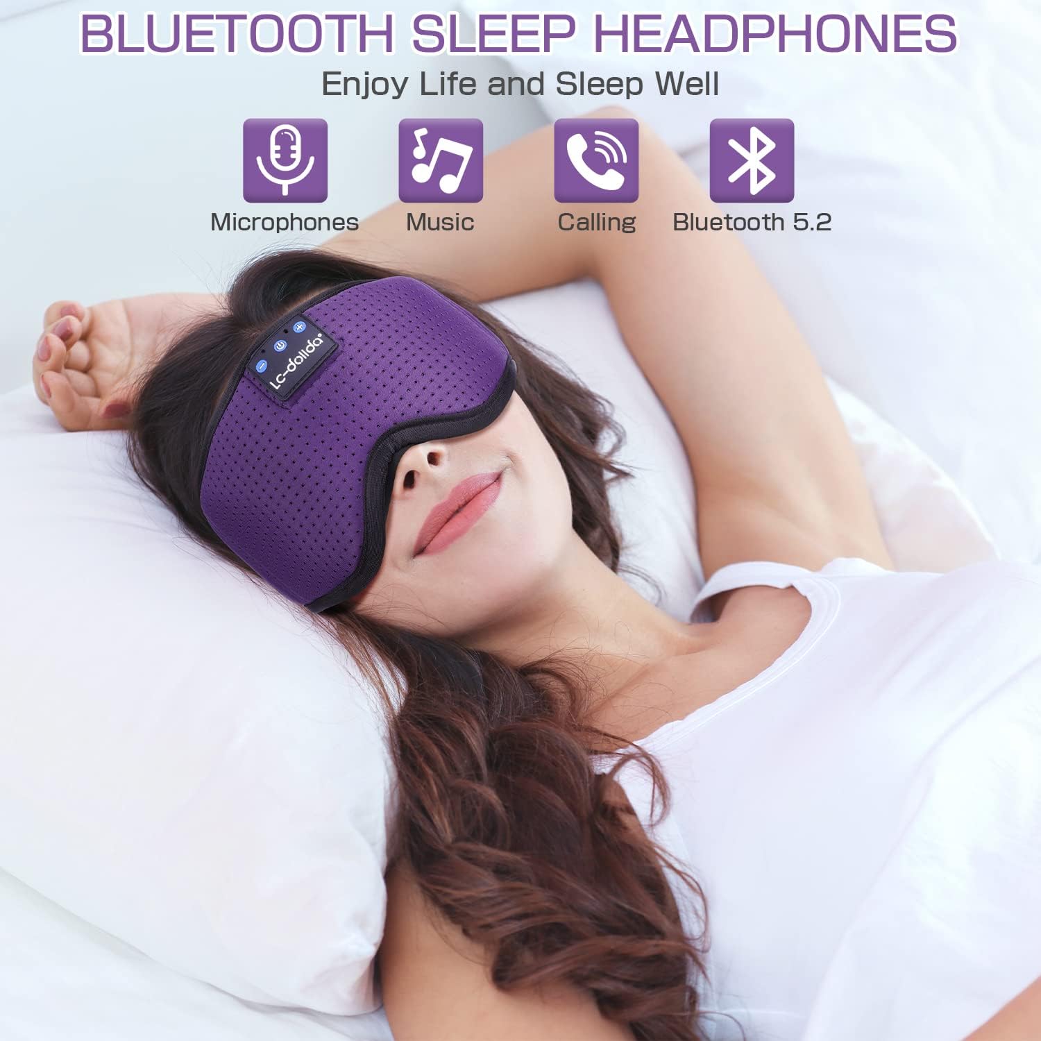 - 【Perfectly Block Out Light & Wireless Connection】LC-dolida Sleep headphones sleep mask with bluetooth headphones has a full coverage and unique nose area design, it can effectively block out light, prevent light leakage and makes your sleep better, Get the benefits of total blackout, whether at home, in a hotel or on the plane. The breathable, fibers of hypoallergenic material allows healthy oxygen in while keeping dry air out, which make you fall asleep faster