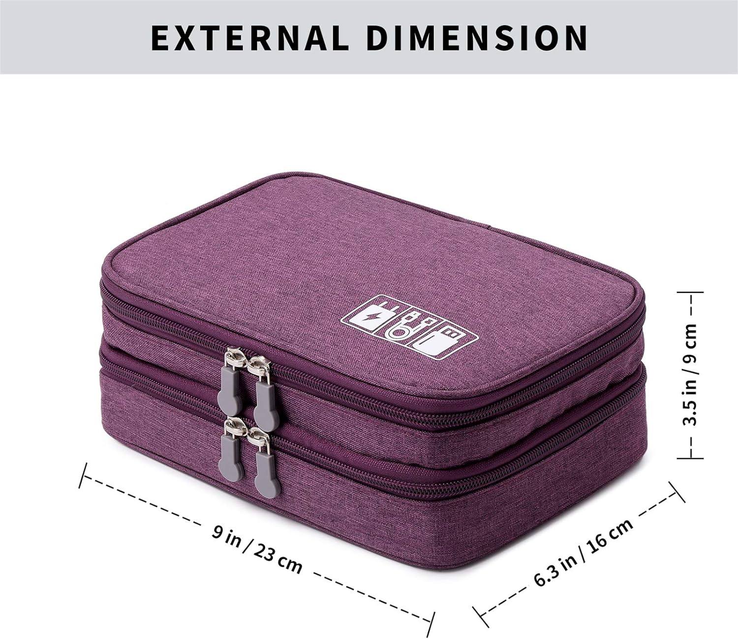 - Large Capacity: L9*W6.3*H3.5 inches (23*16*9 CM). Double layers design has enough space to store your chargers, cables, adapters, power bank, earphones, sd card, mouse, wireless charging-pads, cords, smartwatch and any small electronic accessiories.