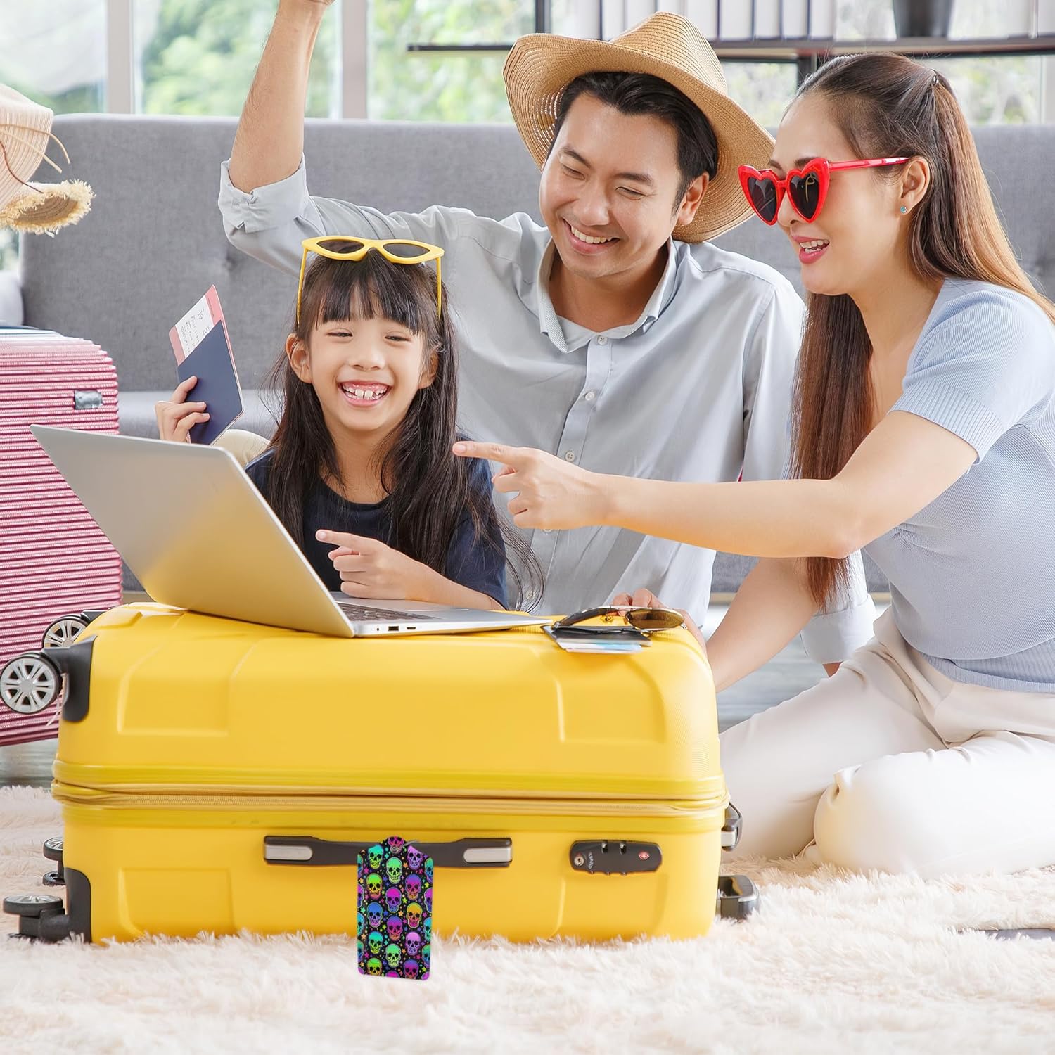 Neon Bright Human Skulls 2 PCS Luggage Tags, Privacy Cover ID Label with Stainless Steel Loop and Address Card for Travel Bag Suitcase
