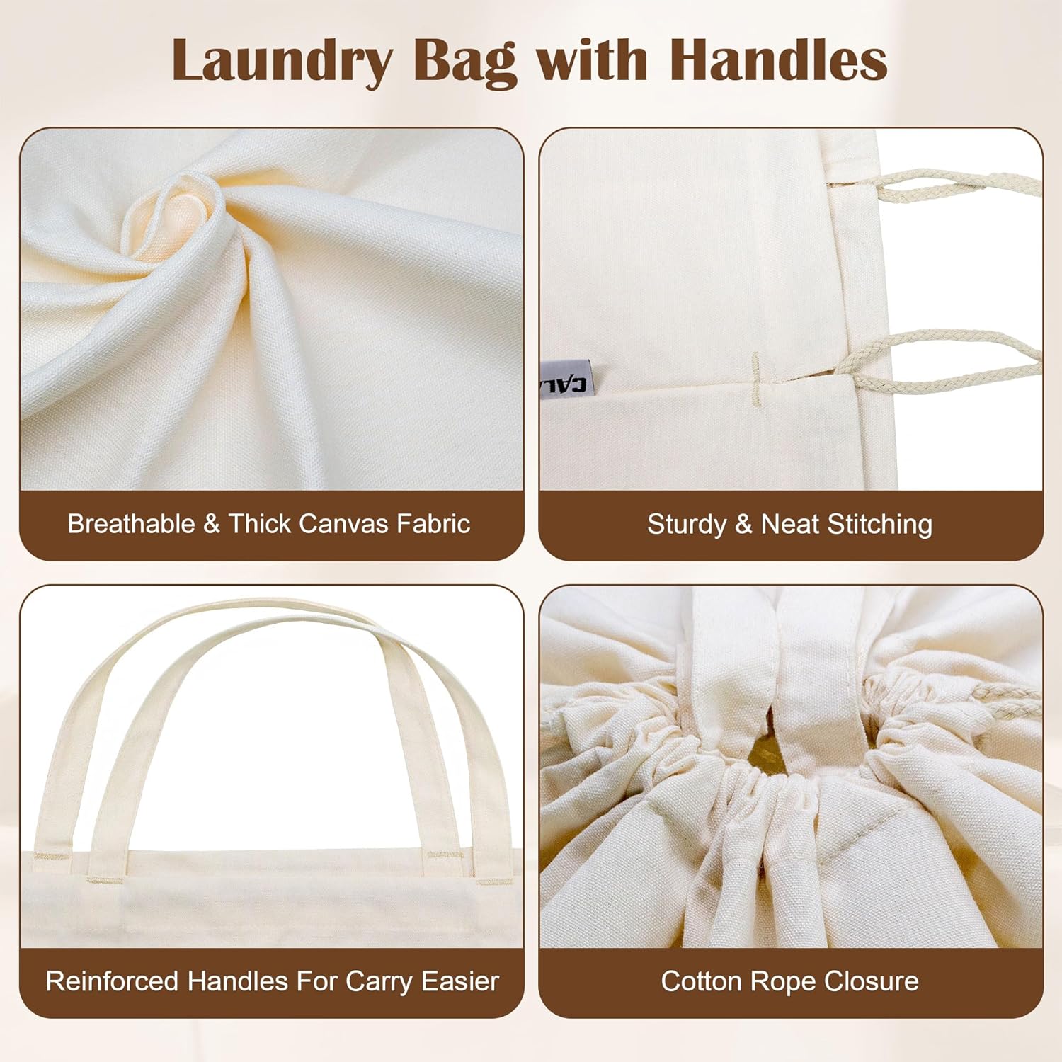- Drawstring Laundry Bag with Reinforced Handles: Our canvas laundry bag with handles makes it easy to carry on the shoulder or hang on the wall. And the cotton rope drawstring closure for easy closing