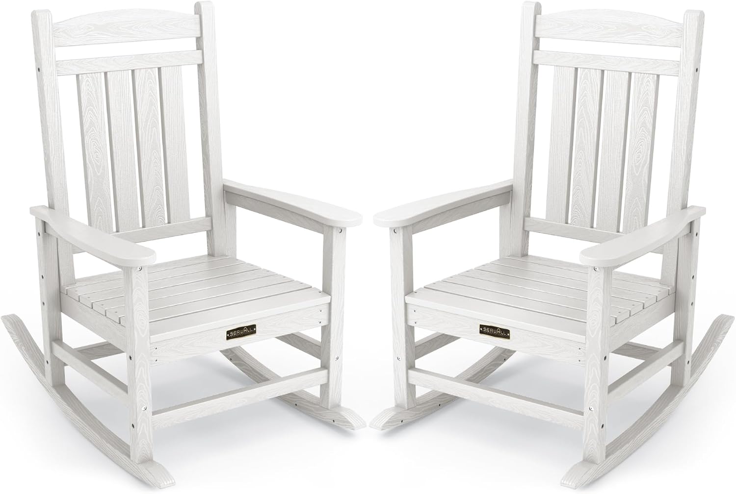 SERWALL Outdoor Rocking Chair Set of 2, HDPE Patio Rocking Chair All-Weather Porch Rocker for Balcony, Yard, White