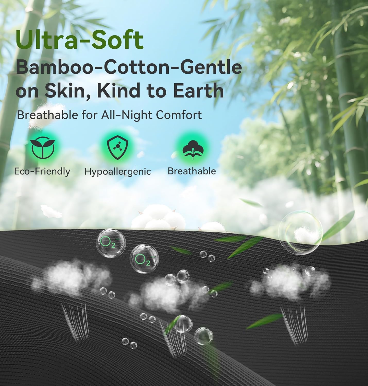 - Breathable Bamboo Cotton Fabric: Crafted from ultra-soft bamboo cotton, our bluetooth sleep mask feels luxuriously gentle against your skin. The naturally breathable fabric wicks away moisture and prevents overheating, comfortable rest all night. Lightweight yet durable, its smooth texture reduces friction, while the airy weave enhances airflow—so you stay relaxed without irritation. Perfect for sensitive skin, it combines cloud-like comfort with sustainable materials for truly restorative sleep